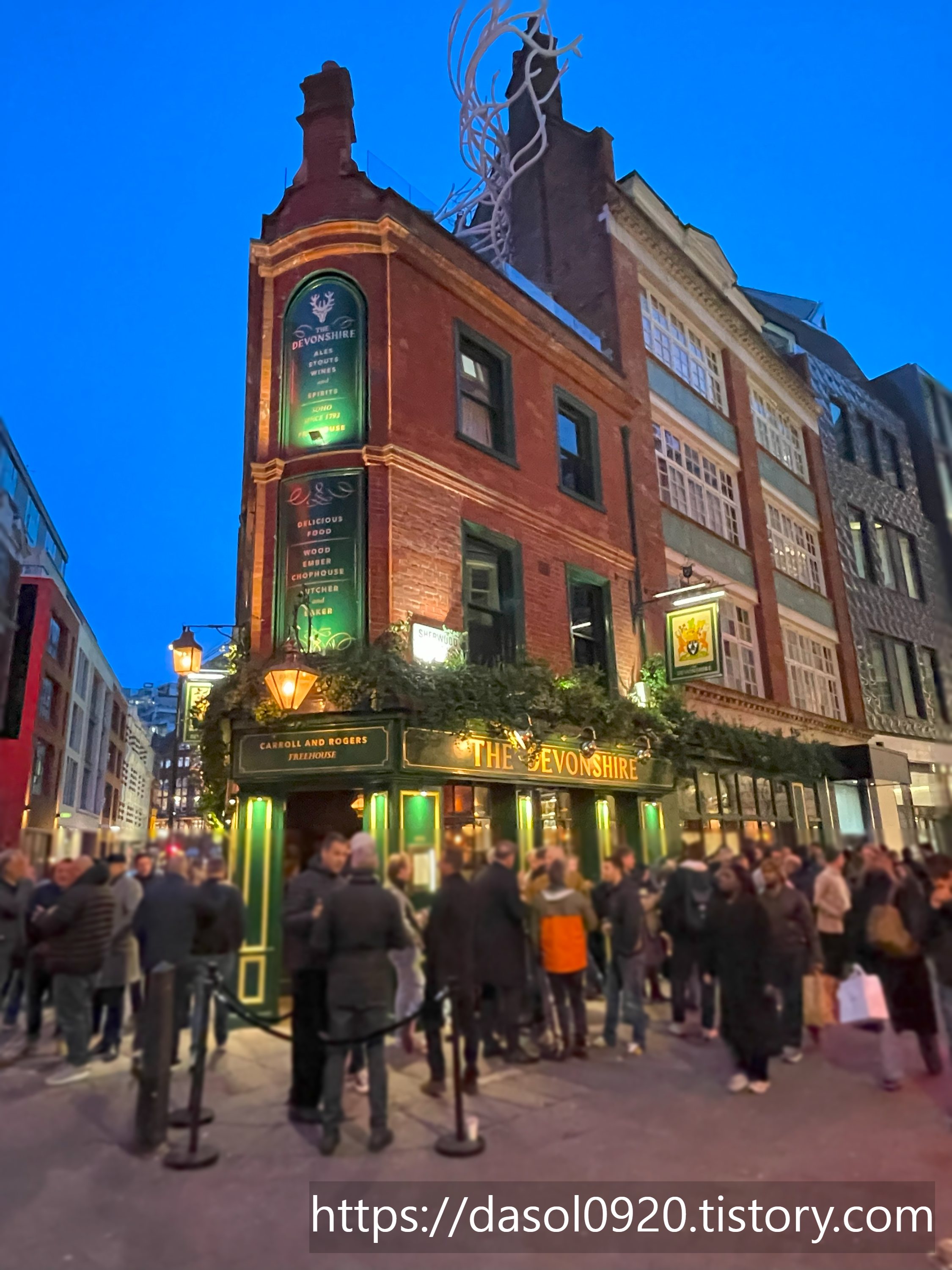 런던 데본셔 내부는 정말 어둡고 복잡하고 시끄러웠지만